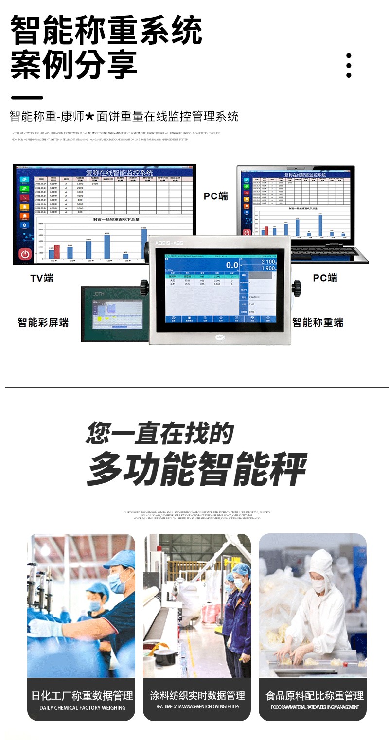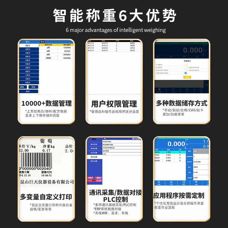 总而言之,巨天AO919-A35智能电子台秤以其高性能硬件、高精度称重、智能化数据管理和强大的扩展性,成为食品、化工、制药、物流等行业进行配方配料、生产检重、过程控制的理想选择。它不仅是一台秤,更是一套完整的称重解决方案。