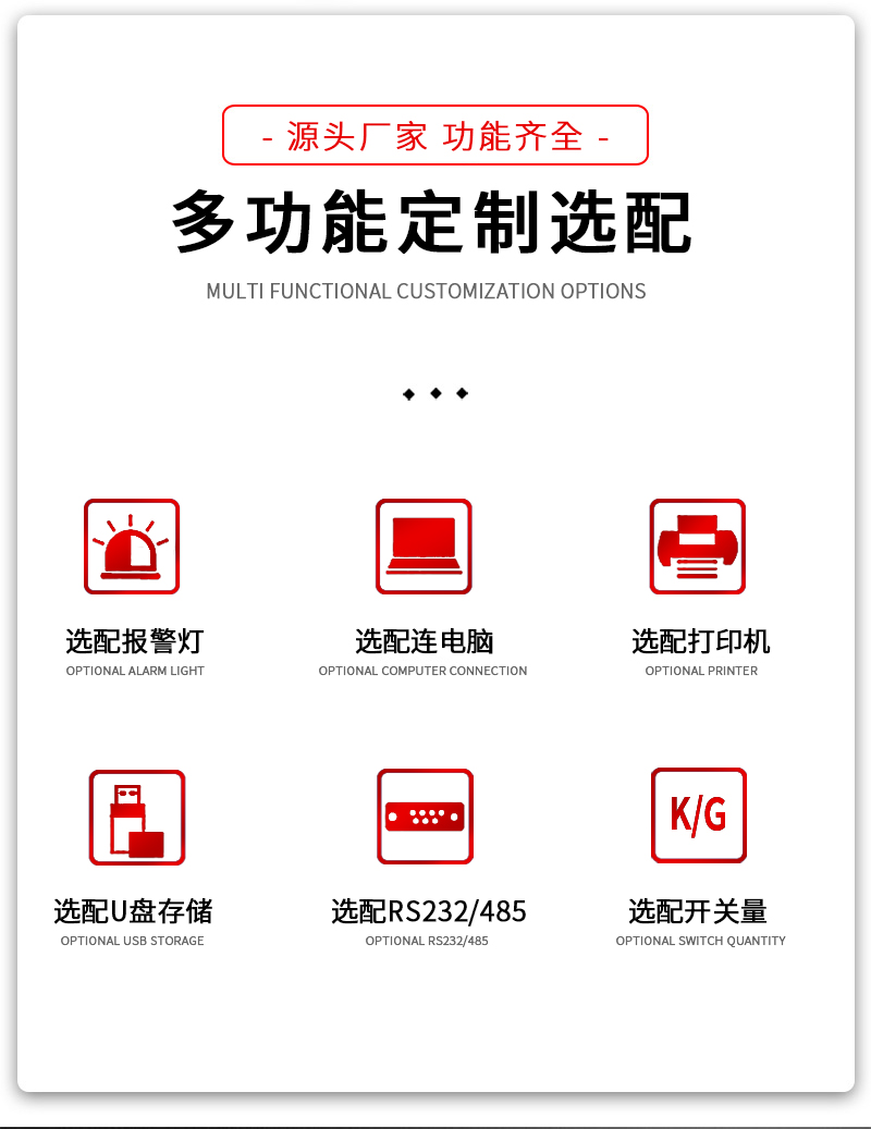 多种配置可选:除了WiFi,还支持选配U盘存储、报警灯、蓝牙、4G物联网等,满足个性化需求。